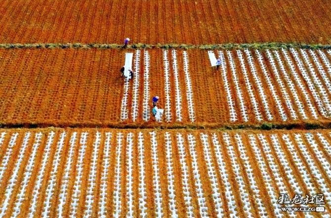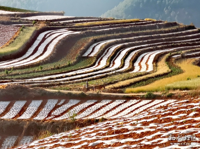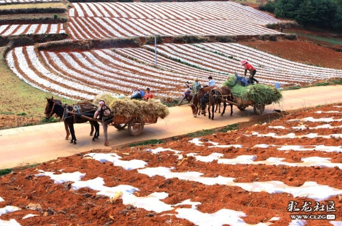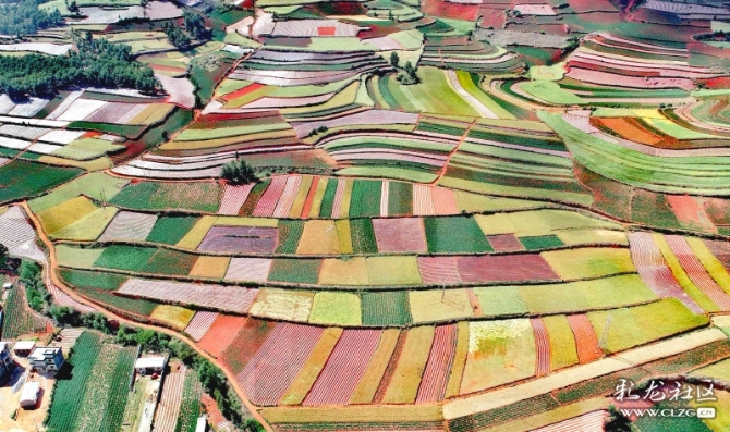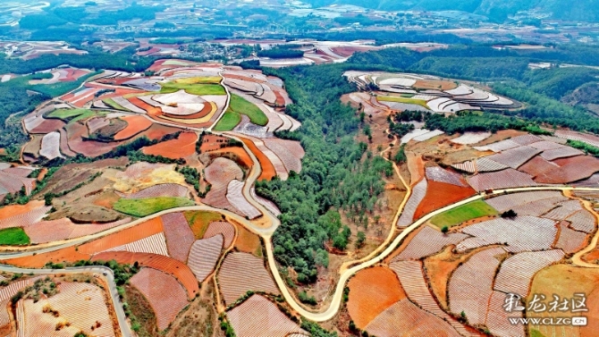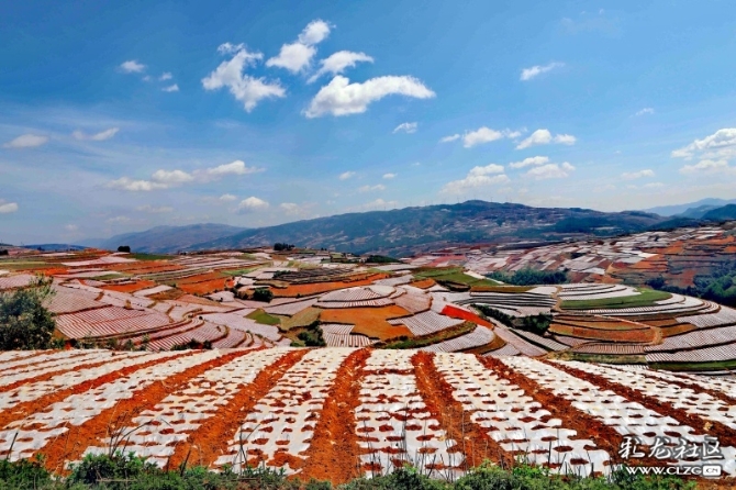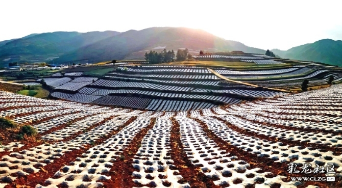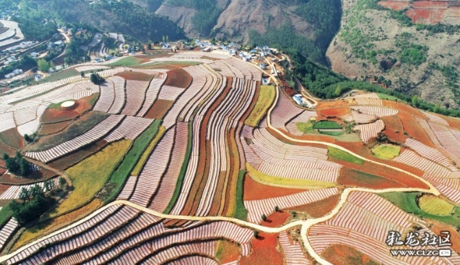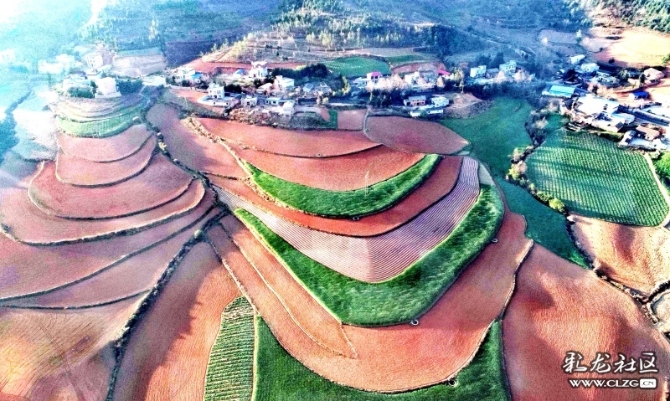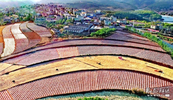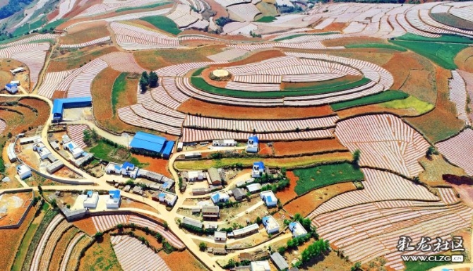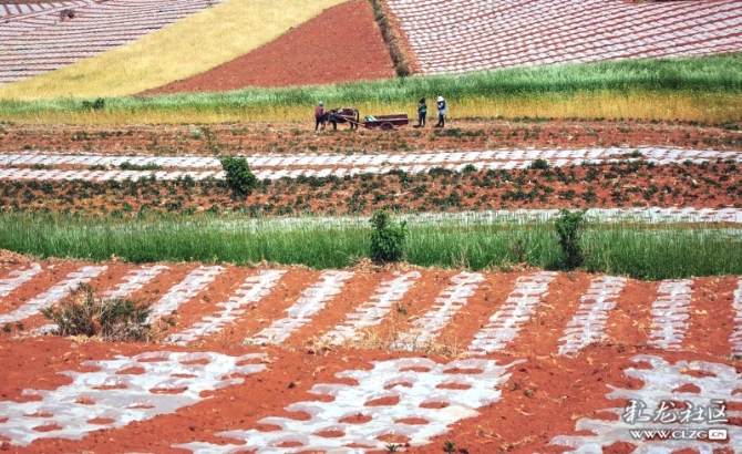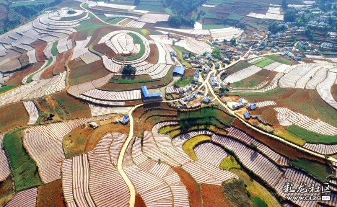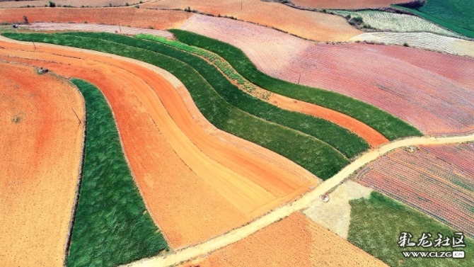 红土地,以特有的乡村地藐景色成为云南最美风景的标志。东川红土地出名了,而寻甸红土地也将出名。近几年在跟踪记录寻甸红土地中对其有了基本的了解和认识,寻甸红土地在流转使用、劳动力转移和农村土地开发上不逊色东川,而且在脱贫攻坚之年越做越好。从人们立体视觉上看,可以说地块面广、点多、线长、好看,路好走,不同耕种类型的红土地呈现了丰富多彩的色块,像似新农人在红土地上弹奏出响亮而醉美的旋律。