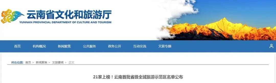 云南省文化和旅游厅公布