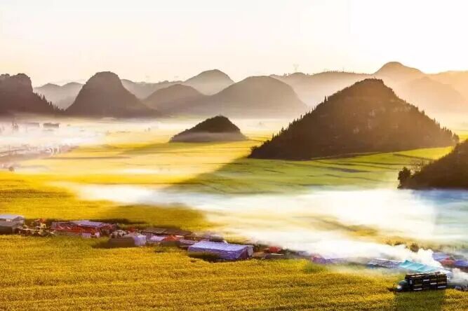 罗平地处北纬25度世界黄金气候生态带和世界首选康体度假养生带,有壮阔澎湃的九龙瀑、多情柔美的多依河、群峰叠翠的那色峰海……