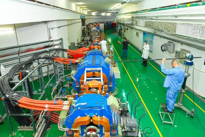 2019年7月24日,运行管理人员在检修中国散裂中子源快循环同步加速器。(新华社记者刘大伟摄)