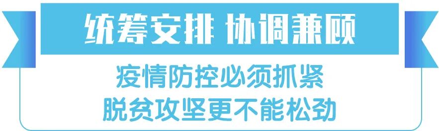 统筹安排新冠肺炎疫情防控和脱贫攻坚工作,坚持在常态化疫情防控中加快推进生产生活秩序全面恢复,继续推动劳动力务工就业,大力开展消费扶贫行动,加快推进扶贫项目实施,促进贫困劳动力“应转尽转”、贫困地区农产品销售“应销尽销”、扶贫项目“应开尽开”,努力把疫情的不利影响降到最低,坚决夺取战“疫”战“贫”两场硬仗的全面胜利。