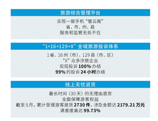 “整治乱象、智慧旅游、无理由退货”的旅游革命“三部曲”奏出了云南诚信旅游体验的新乐章。2019年,“一部手机游云南”推出“30天无理由退货”,联动全省退货监理中心和服务点重构游客购物退货体系。在此基础上,执行《全省游客购物退货工作管理暂行办法》。