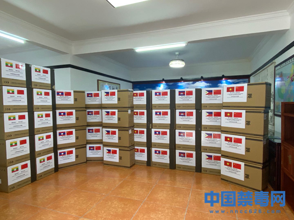 截止目前,中国禁毒基金会先后向缅甸、老挝、柬埔寨、越南、菲律宾等国禁毒部门援助价值人民币36万余元的防疫物资。