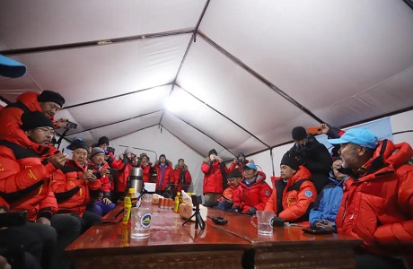 在5月12日、22日两次冲顶计划因天气原因失败后,应登山测量队的支援请求,西藏自治区气象局于5月23日增派气象预报服务团队紧急驰援珠峰大本营。