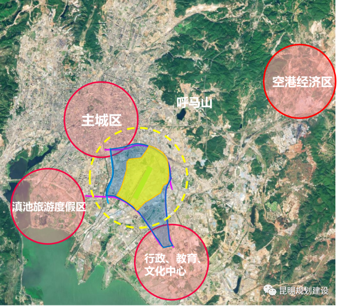 昆明巫家坝城市新中心以昆明老机场为核心,东至彩云北路、西至盘龙江、南至广福路、北至南二环及昆石高速公路。距离昆明主城中心区约3公里,距呈贡行政中心区约15公里。