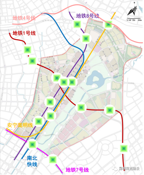 规划:地铁4、7、8号线、安宁嵩明线、南北快线。