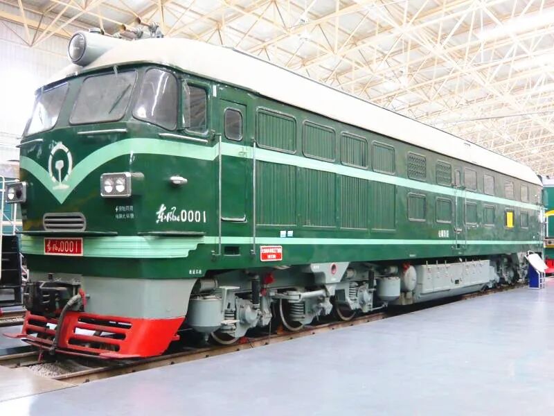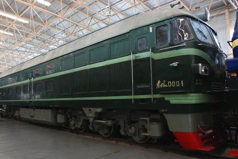 东风4(DF4)型0001号货运内燃机车,是大连机车车辆厂生产的我国第一台交—直流电传动干线货运机车。机车全长21.1米,设计速度每小时100公里,轴式排列为C0-C0,整备重量138吨。