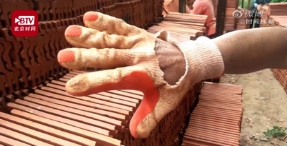 搬瓦时,他虽然戴着手套,手却磨出了厚厚的一层茧,重点是手套也经常被磨破,他说:一个月要破6双手套。