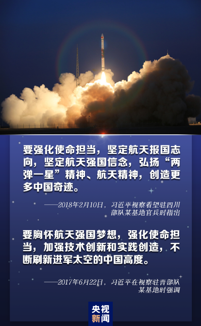两天后,长征三号乙运载火箭以雷霆万钧之势拔地而起,将北斗三号卫星成功发射到浩瀚太空。基地官兵牢记习主席嘱托,实现了筑梦九天的又一次胜利进军。