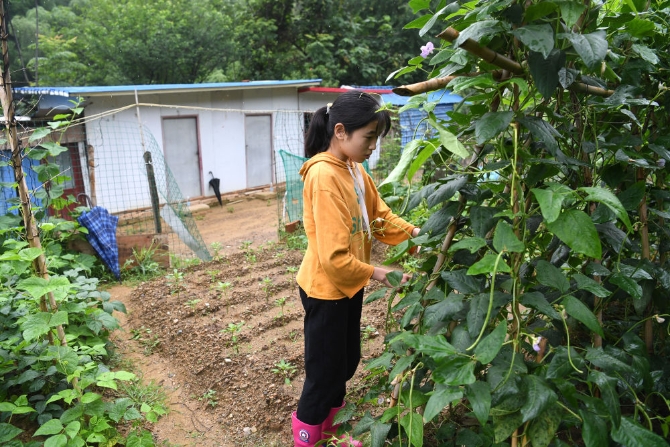 2019年9月,蔡齐艳升入金寨县三合实验学校读六年级,平时寄宿在学校,周末步行10里山路回家。
