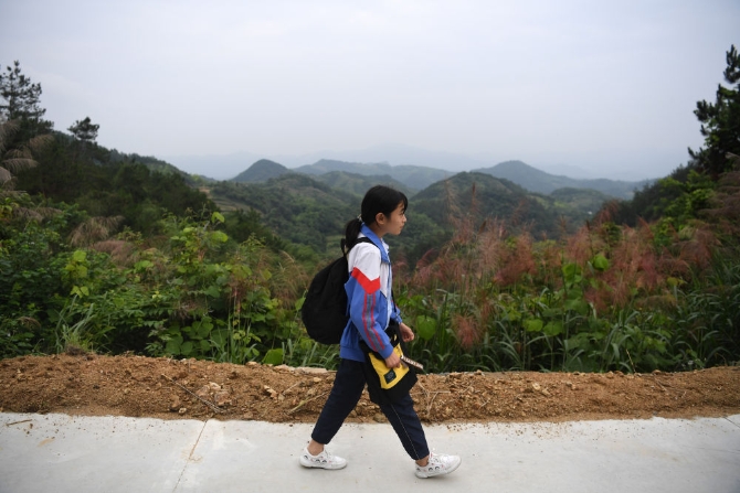 对蔡齐艳来说,放学路上的变化不只是脚下的土路变成了水泥路,最开心的是可以“低头看看路,抬头看看天”。