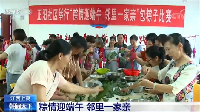 22日,江西省上高县敖阳街道正阳社区举办迎端午活动,居民们一起包粽子、结蛋兜、挂香包,其乐融融。活动结束后,社区工作人员还把一部分包好的粽子分发给辖区内的空巢老人、留守儿童和困难家庭,给他们送去关爱与温情。
