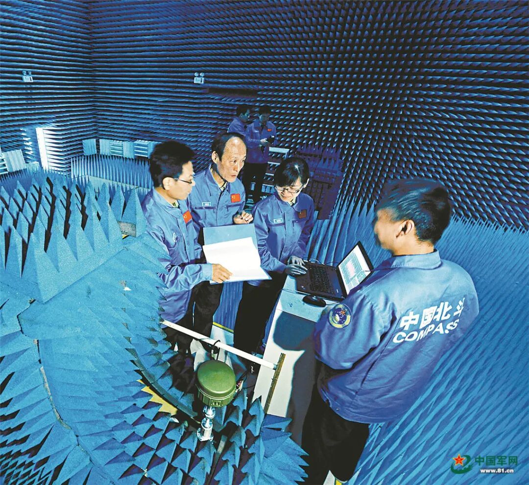 2013年10月,为保证北斗系统终端满足入网工作要求,技术人员在微波暗室里对关键器件进行反复测试、调试。王安民摄