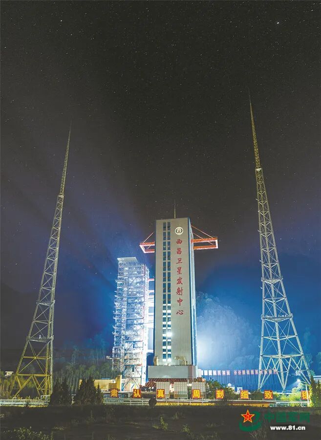 星空下静静矗立的发射塔架,正等待北斗卫星导航系统全球组网收官之星的到来。