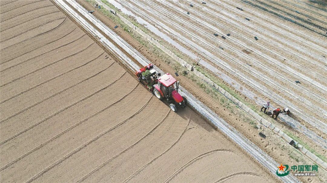 2018年4月,宁夏吴忠市利通区金积镇塔湾村村民通过北斗导航信号基站定位,实现拖拉机自动驾驶播种、起垄、接行等田间作业。新华社发