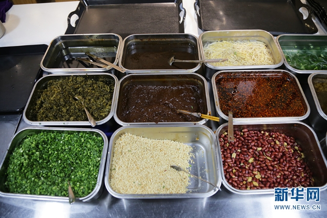 制作豆花米线所用的佐料(6月21日摄)。新华网 徐华陵 摄