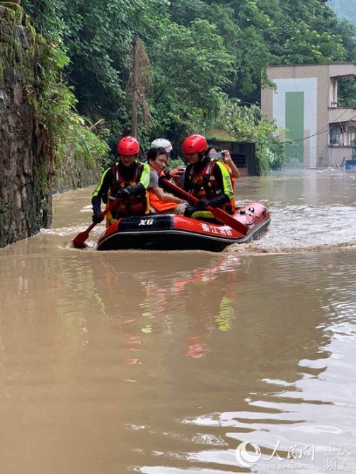 6月22日16时,綦江区洪峰过境。接到社区求助电话后,綦江区消防救援支队指战员立即开展救援。消防员到达时,新山村社区居民楼一楼已经被全部淹没,消防员们身着水域救援服,乘坐橡皮艇向居民楼驶去。10余分钟后,被困人员被成功救出。