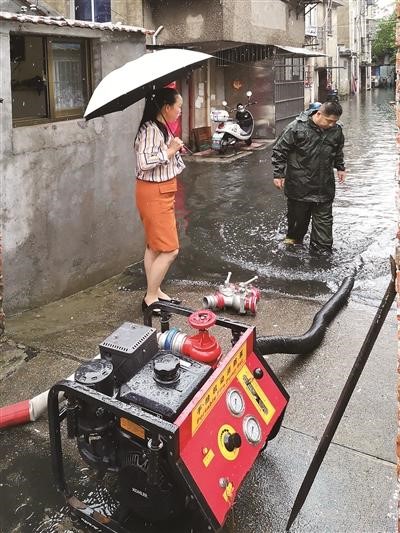 6月27日4时起,江苏泰州市中南部地区遭受暴雨袭击,市区各地出现不同程度的积水现象。9时许,泰州市海陵区城中街道泰山社区排涝人员全部到位,对辖区内低洼小区原五金公司宿舍、泰山路35号楼等几幢居民楼进行抽水。由于积水严重,社区向街道和住建部门汇报了排涝情况。随后,区住建局派泵增援,形成大泵外围抽、小泵里面抽,很快将居民家中的积水排走。
