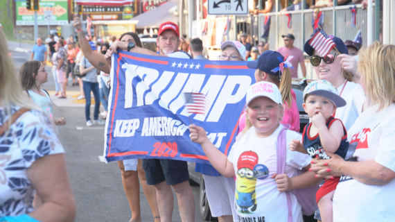 在通往“总统山”的公路两侧,餐厅和纪念品商店挤满兴奋的游客,大批特朗普的支持者簇拥在街道上,向过往的行人和车辆摇晃手中的旗帜和标语。