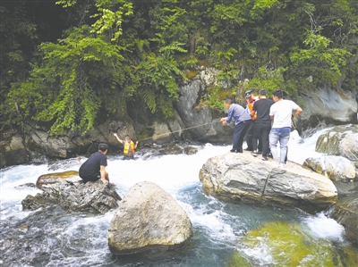 救援人员正在救援被困游客