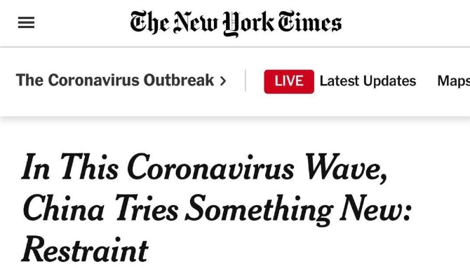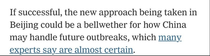 《纽约时报》报道称:“在新一轮疫情中,北京没有对全城采取封闭式管理,而是重点防疫。这样的应对方法如果成功,那么这种新方法可能会成为中国应对未来疫情的风向标。”