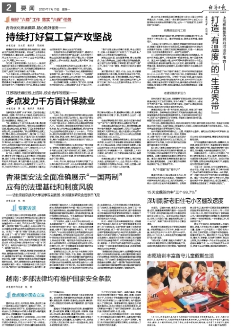 北京航空航天大学法学院副教授、全国港澳研究会理事田飞龙日前在接受经济日报记者采访时表示,香港国安法的颁布实施是“一国两制”法治建设中的一个典范,不仅充分体现了国家安全属“一国两制”框架下中央事权,也充分体现了中央对香港全面管治权和特区高度自治权的有机结合。实现了“一国”和“两制”在制度上的互联互通,凸显了“一国”对“两制”的制度塑造能力和保护能力,全面准确展示了“一国两制”应有的法理基础和制度风貌。同时,该法也有效回击了香港反对派与西方反华势力所信奉的将“一国”与“两制”对立,将宪法与基本法对立的错误法理学,使“一国两制”回归初心。