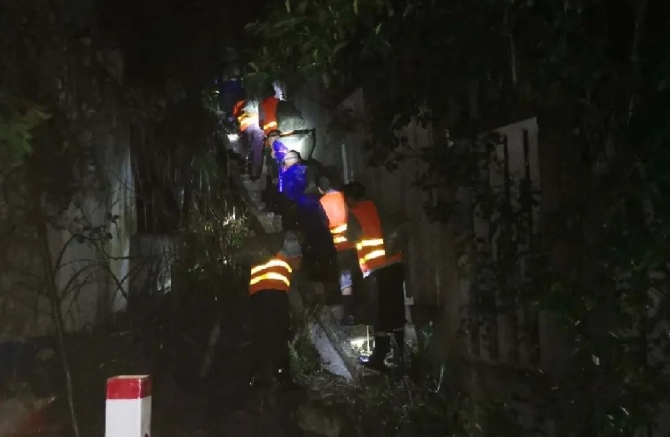 雨夜中,袁家山灯火通明 ,紧张的搜救工作还在继续。
