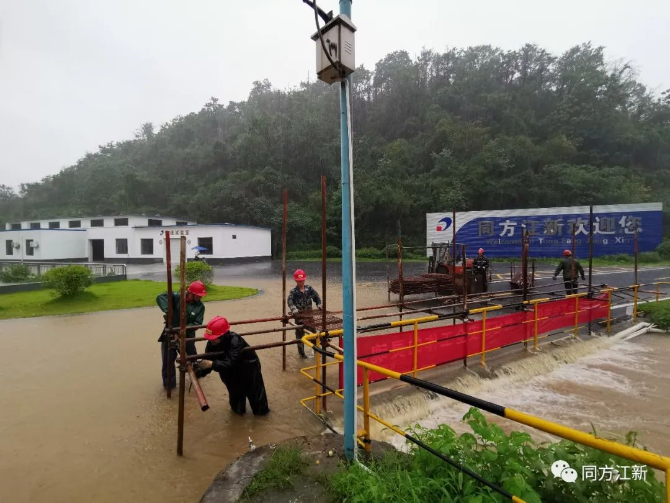 在鄱阳湖下游,中核集团同方江新所在地江湖水位快速上涨,面对异常罕见的暴雨内涝和洪水迅猛上涨的严峻形势,紧急动员党员干部和职工群众,迅速、积极、主动投入到防汛抗洪抢险救灾中去,把洪水造成的损失尽量降低到最小程度。