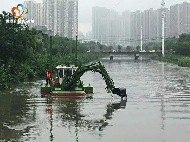 连续的强降雨也导致武汉市东湖水位上涨,为了及时抽排湖水,中国交建 中交疏浚研究中心“武航一号”两栖式环保疏浚船 被紧急调往抗洪一线,清淤港渠,提升过水能力。实施清淤后,港渠过水流量可以达到每秒90立方米,有效提升东湖的泄洪能力 。