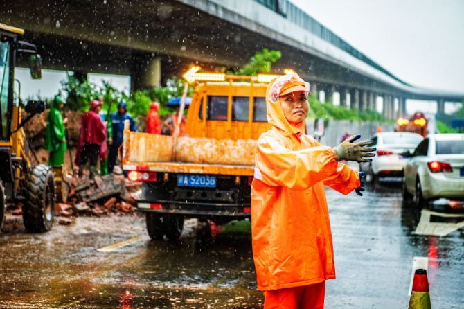 6月29日19时许,319国道湖南省吉首市河溪镇路段出现边坡塌方,造成交通阻断。吉首市公路建设养护中心抢险人员冒雨赶赴现场。铲车率先启动、工人抡起铁锹……历经3小时突击,抢险人员完成了路面塌方清理,319国道河溪镇路段恢复畅通。