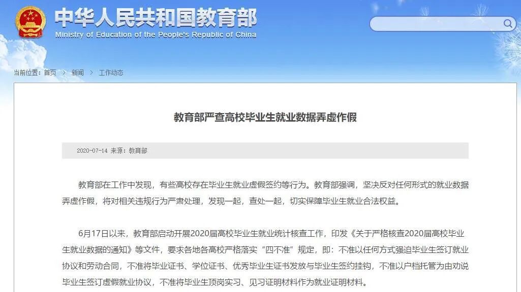 教育部:有高校就业数据弄虚作假 将严查!