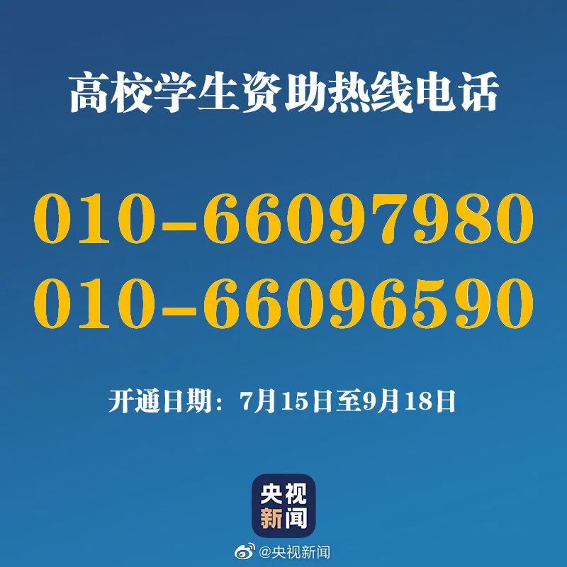 全国高校学生资助热线开通时间从7月15日至9月18日,每天早8点至20点。开通时间比2019年延长了一周,是历年来最长的一年。今年,不仅教育部开通全国高校学生资助热线电话, 各省(区、市)教育行政部门、中央高校、地方高校均开通了学生资助热线。