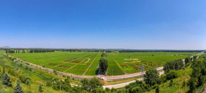 乌兰浩特市义勒力特万亩稻田景观。(通讯员 毕力格摄)