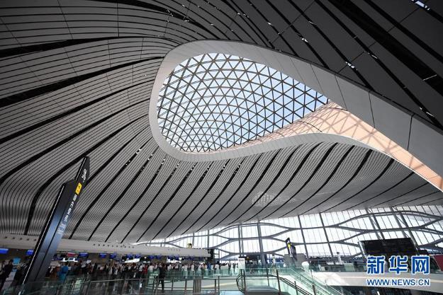 △资料图,北京大兴国际机场航站楼内部。(新华社记者 张晨霖 摄)