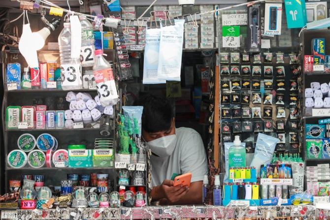 7月23日,在美国纽约时报广场,一名小贩等待顾客。(新华社记者王迎摄)
