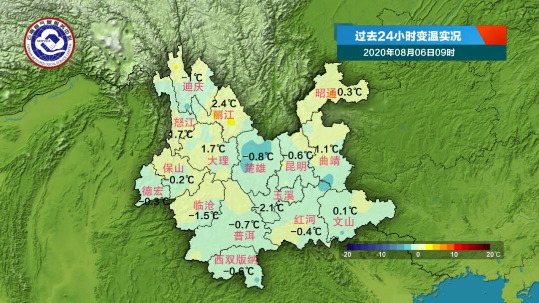 玉溪降温幅度最大,下降了2.1℃。