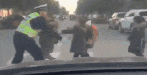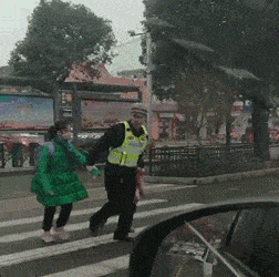 他或张开双臂护着孩子横过斑马线