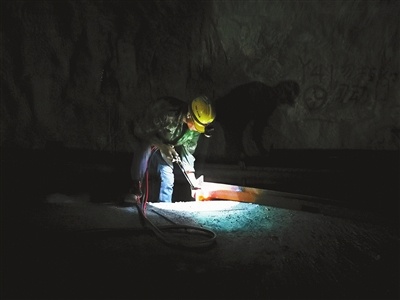 五老峰隧道开工建设以来,由于隧道岩层遇水软化,突水突泥情况频繁发生,大小涌水不计其数,而出口处又是高地热温泉地段,“涌水时的隧道如同‘水帘洞’,最高峰一天涌水量达2.4万立方米。”土建3标项目部常务副经理张国良说,“雨衣、雨靴、安全帽成了五老峰特长隧道建设者们的日常装束,工人们每天都处在‘水深火热’之中,辛苦程度难以想象,这对他们来说是一种煎熬,更是一种挑战。”