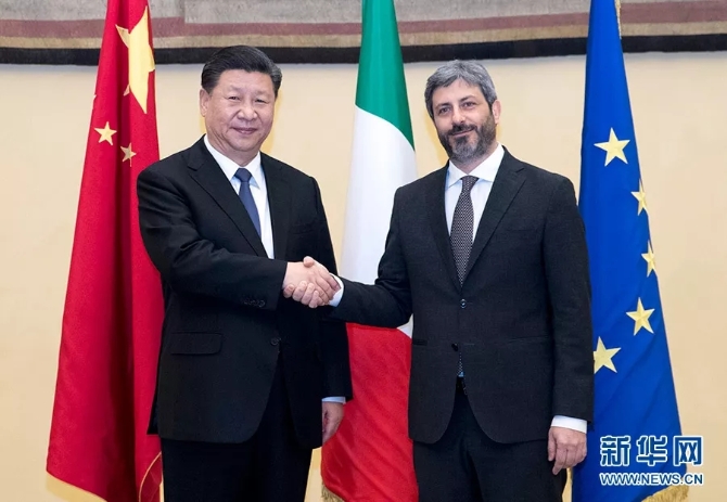 2019年3月22日,国家主席习近平在罗马会见意大利众议长菲科。 新华社记者 王晔/摄