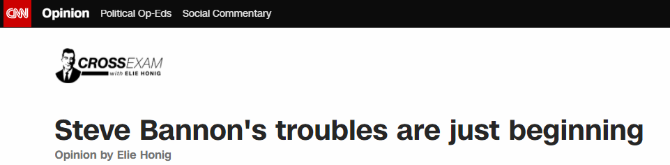 CNN评论称,班农麻烦刚刚开始。对班农来说,为一个非黑即白的财务案件进行辩护,难度比为涉及主观意图的案件辩护要大得多。再优秀的律师也没法为假发票和假收据洗白。
