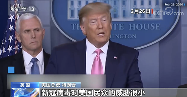 美国总统 特朗普(2月26日):新冠病毒对美国民众的威胁很小,和流感差不多。