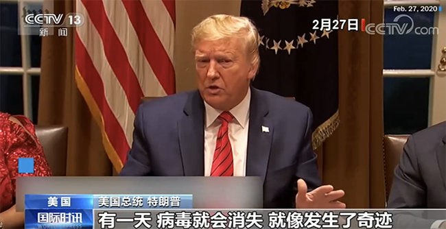 美国总统 特朗普(2月27日):有一天,病毒就会消失,就像发生了奇迹。