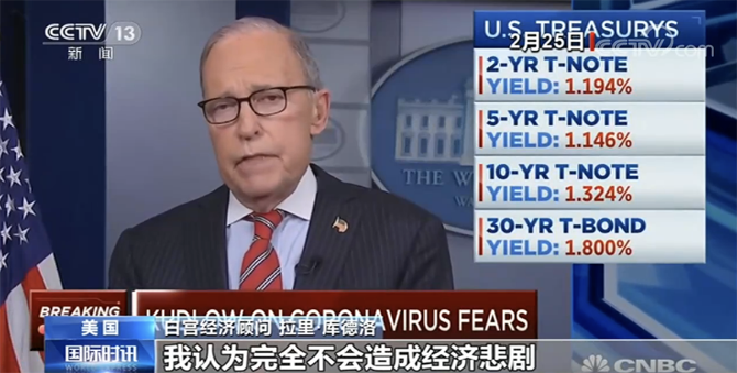 白宫经济顾问 拉里·库德洛:我们已经控制住了疫情,我认为完全不会造成经济悲剧。
