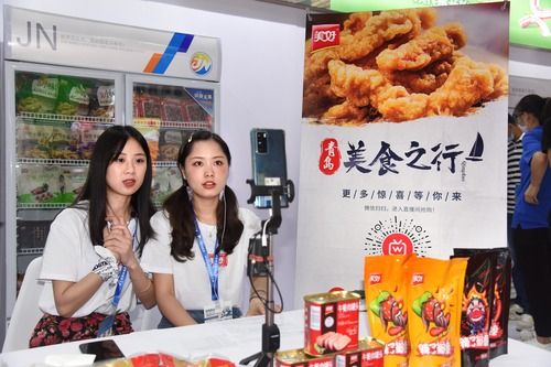 不少商家借助展会进行直播。新华社记者李紫恒摄