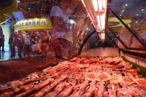 展会中展出的多样肉类产品。新华社记者李紫恒摄