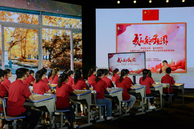 2019年国庆节前夕,上海市以“我和我的祖国”为主题,开展大中小学“同上一堂思政课”教学观摩活动,为全市大中小学思政课教师提供更多同台竞技切磋的机会,形成常态化的工作机制。 上海市教育委员会供图