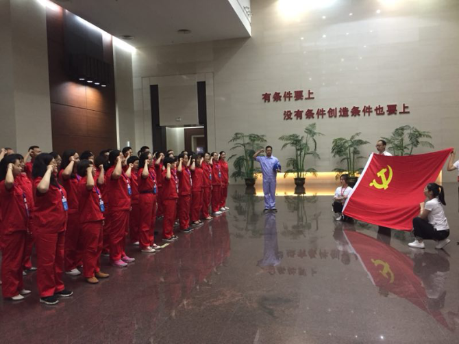 为帮助广大思政课教师在深入了解党和人民伟大实践中汲取养分、丰富思想、坚定“四个自信”,中宣部、教育部组织开展以“习近平新时代中国特色社会主义思想在各地的生动实践”为主题的全国高校思政课教师暑期实践研修活动。图为参加实践研修的教师在铁人王进喜纪念馆举行重温入党誓词仪式。 大庆师范学院供图