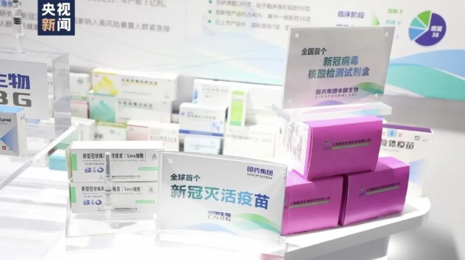 2020年中国国际服务贸易交易会公共卫生防疫专题展区上,国产新冠病毒灭活疫苗实物首次公开展示。