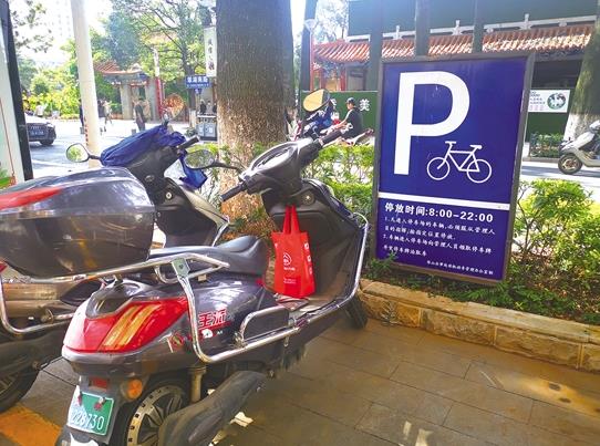 在人民中路建设银行附近,虽然设有收费保管站,但相隔不远处就有免费停放点,还有身着城管制服的工作人员进行巡查,发现有未集中停放、摆放有序、朝向一致的或停至画线区域外的电动车,会将其挪到合适位置。