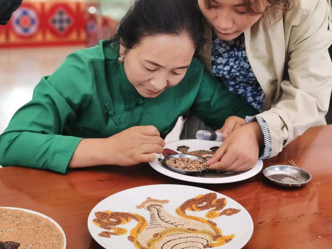 青海省黄南藏族自治州尖扎县百姓正在制作藏族风格的“五谷画”。张蕴 摄